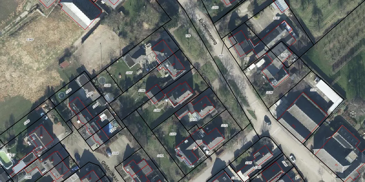 Het perceel waarop Erichemseweg 12-C staat heeft een oppervlakte van 565 m². Dit is een groot perceel. De perceeloppervlakte wordt geregistreerd door het Kadaster. Gedetailleerde informatie over de maten van dit perceel kunt u vinden in het rapport Kadastrale kaart met maatvoering van Erichemseweg 12-C.