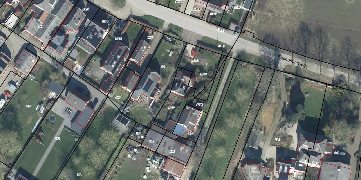 Erichemseweg 58 is gelegen op kadastraal perceel BRN00F1287. Deze kadastrale aanduiding is uniek en wordt gebruikt door het Kadaster om eigendomsrechten en andere zakelijke rechten vast te leggen. Het perceel maakt onderdeel uit van de kadastrale gemeente Buren.