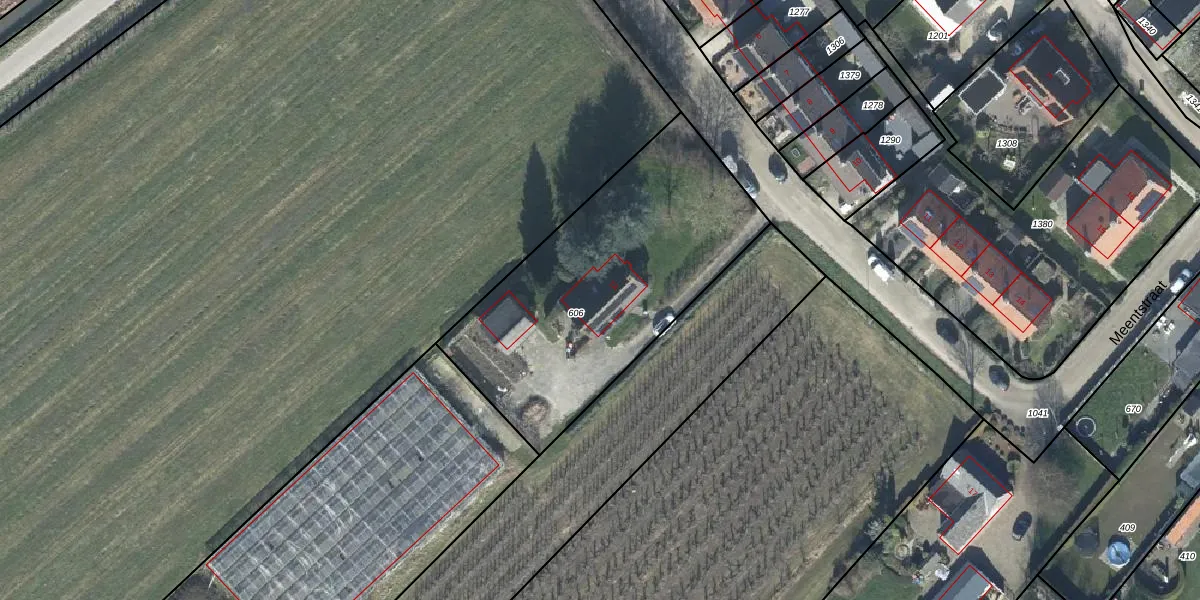 Het perceel waarop Meentstraat 7-A staat heeft een oppervlakte van 1365 m². Dit is een zeer groot perceel. De perceeloppervlakte wordt geregistreerd door het Kadaster. Gedetailleerde informatie over de maten van dit perceel kunt u vinden in het rapport Kadastrale kaart met maatvoering van Meentstraat 7-A.