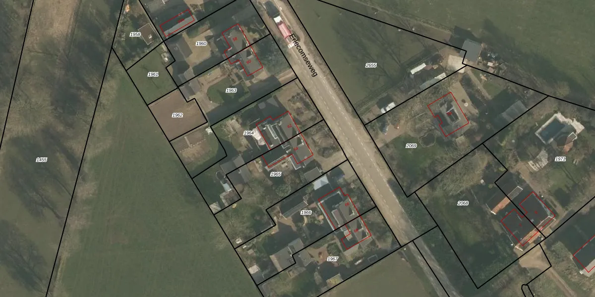 Erlecomseweg 64 is gelegen op kadastraal perceel OOI00B1965. Deze kadastrale aanduiding is uniek en wordt gebruikt door het Kadaster om eigendomsrechten en andere zakelijke rechten vast te leggen. Het perceel maakt onderdeel uit van de kadastrale gemeente Ooij.