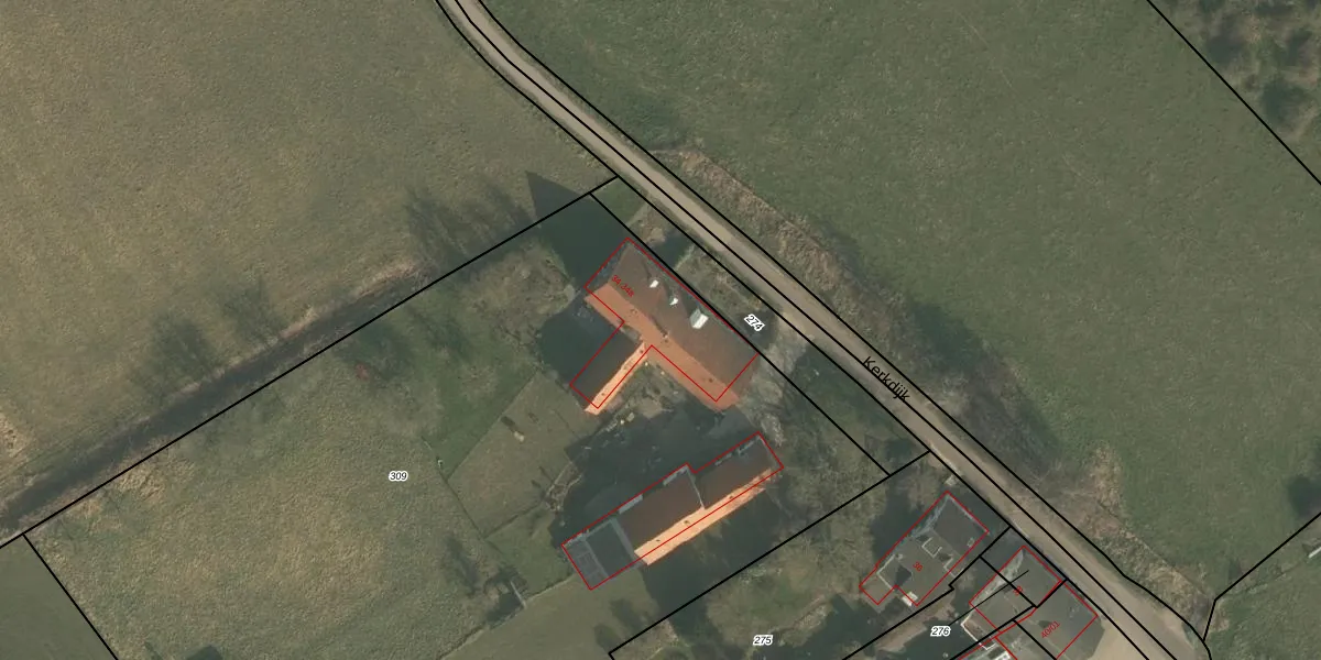 Kerkdijk 34-a is gelegen op kadastraal perceel OOI00G309. Deze kadastrale aanduiding is uniek en wordt gebruikt door het Kadaster om eigendomsrechten en andere zakelijke rechten vast te leggen. Het perceel maakt onderdeel uit van de kadastrale gemeente Ooij.