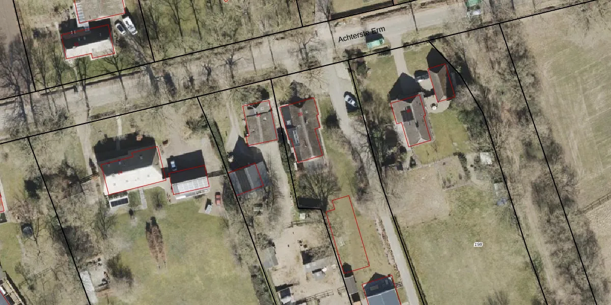 Achterste Erm 28 is gelegen op kadastraal perceel SLE00S199. Deze kadastrale aanduiding is uniek en wordt gebruikt door het Kadaster om eigendomsrechten en andere zakelijke rechten vast te leggen. Het perceel maakt onderdeel uit van de kadastrale gemeente Sleen.