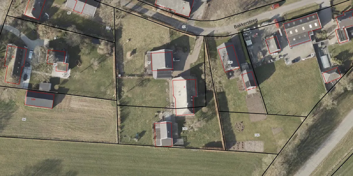 Het perceel waarop Bakkersteeg 2 staat heeft een oppervlakte van 2380 m². Dit is een zeer groot perceel. De perceeloppervlakte wordt geregistreerd door het Kadaster. Gedetailleerde informatie over de maten van dit perceel kunt u vinden in het rapport Kadastrale kaart met maatvoering van Bakkersteeg 2.