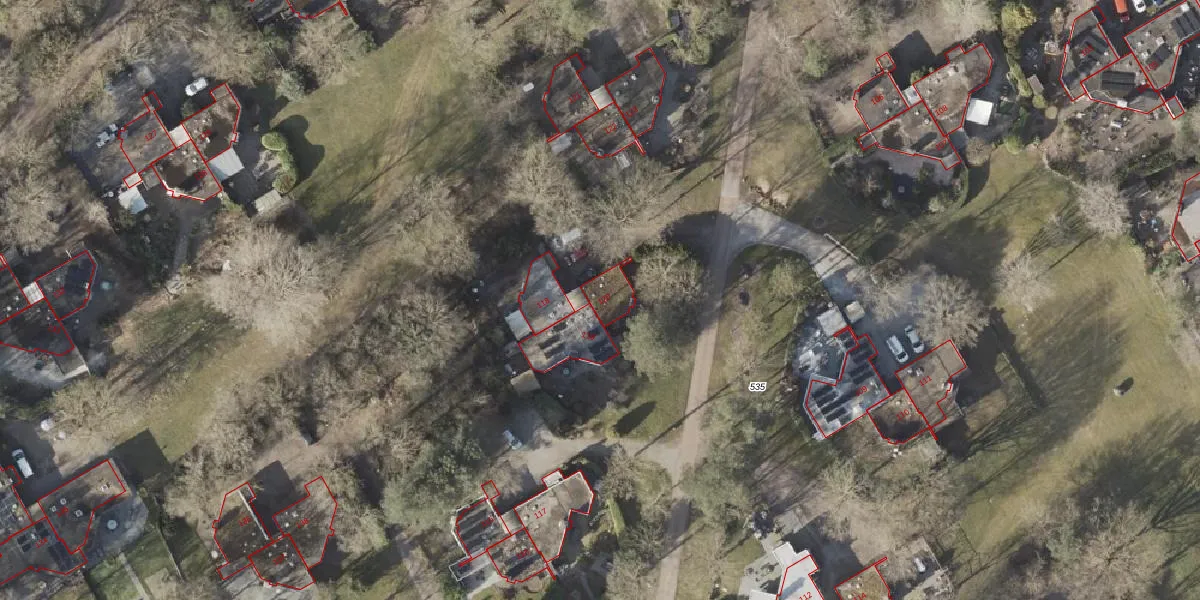 Het adres ligt op het perceel SLE00-R-535, dat zich in de kadastrale gemeente Sleen bevindt. Het perceel is met 20,3 ha relatief groot. Het gemiddelde ligt in de kadastrale gemeente Sleen op 1,1 ha. Het grootste perceel in de kadastrale gemeente is 2,51 km². Het kleinste perceel heeft een oppervlakte van 1 m². Er zijn 196 adressen aanwezig op het perceel. In de Basisregistratie Kadaster (BRK) werden de grenzen van het perceel geregistreerd op 21-06-2024.