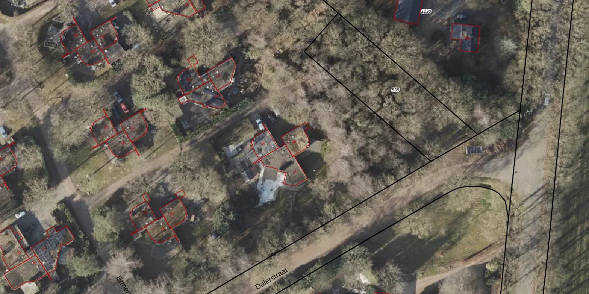 Het adres ligt op het perceel SLE00-R-535, dat zich in de kadastrale gemeente Sleen bevindt. Het perceel is met 20,3 ha relatief groot. Het gemiddelde ligt in de kadastrale gemeente Sleen op 1,1 ha. De grootste perceeloppervlakte in de kadastrale gemeente is 2,51 km². De kleinste oppervlakte bedraagt 1 m². Op het perceel liggen in totaal 196 adressen. De huidige grenzen van het perceel zijn digitaal in de Basisregistratie Kadaster (BRK) geregistreerd op 21-06-2024.