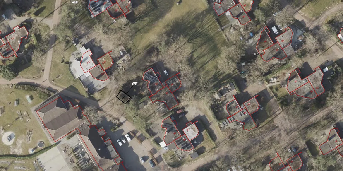 Het adres ligt op het perceel SLE00-R-535, dat zich in de kadastrale gemeente Sleen bevindt. Het perceel is met 20,3 ha relatief groot. Het gemiddelde ligt in de kadastrale gemeente Sleen op 1,1 ha. De grootste perceeloppervlakte in de kadastrale gemeente is 2,51 km². De kleinste oppervlakte bedraagt 1 m². Er zijn 196 adressen aanwezig op het perceel. De huidige grenzen van het perceel zijn digitaal in de Basisregistratie Kadaster (BRK) geregistreerd op 21-06-2024.