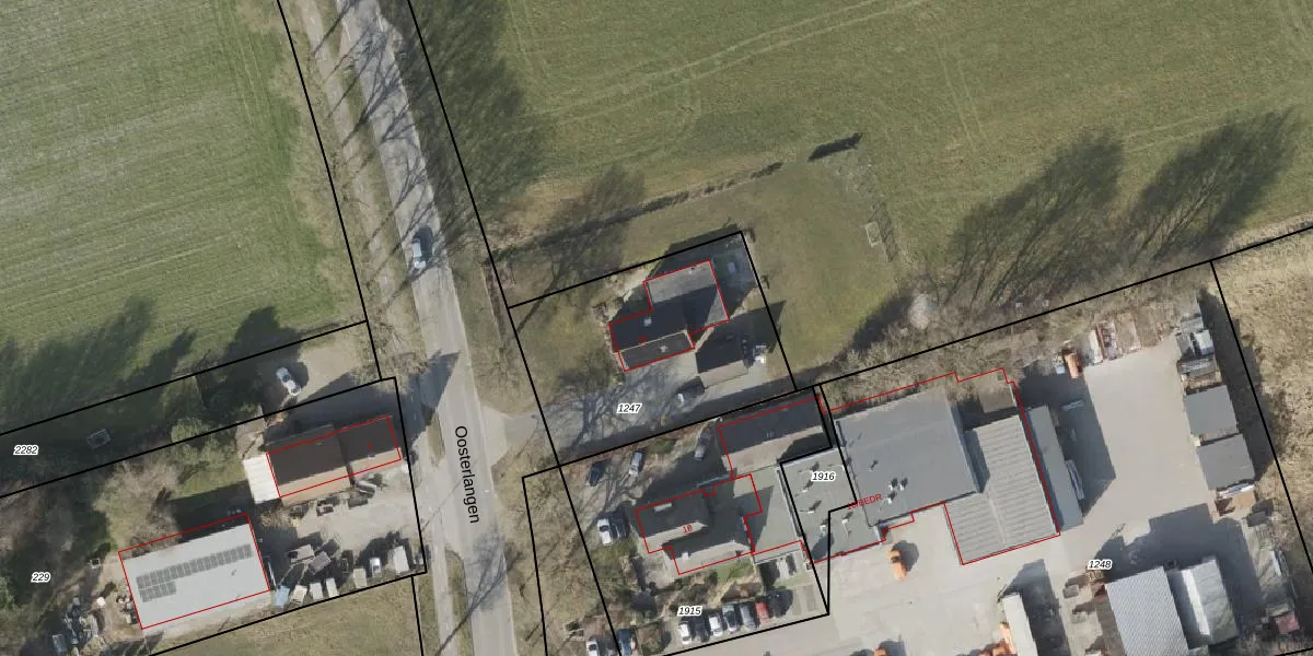 Het perceel waarop Oosterlangen 12 staat heeft een oppervlakte van 975 m². Dit is een groot perceel. De perceeloppervlakte wordt geregistreerd door het Kadaster. Gedetailleerde informatie over de maten van dit perceel kunt u vinden in het rapport Kadastrale kaart met maatvoering van Oosterlangen 12.