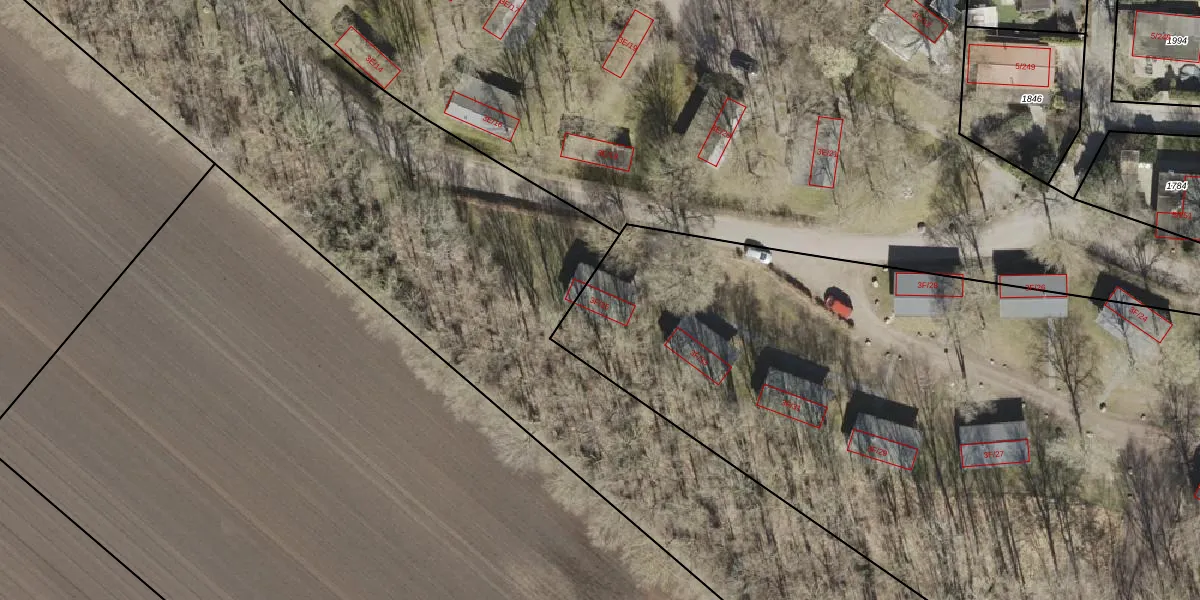 Het adres is gelegen op perceel 2022 in de sectie R en de kadastrale gemeente Sleen. De kadastrale aanduiding is aldus SLE00-R-2022. De gemiddelde perceeloppervlakte in de kadastrale gemeente Sleen is 1,1 ha. Dit perceel is met zijn 1,9 ha dus groter dan gemiddeld. De grootste perceeloppervlakte in de kadastrale gemeente is 2,51 km². De kleinste oppervlakte bedraagt 1 m². Op het perceel zijn 29 adressen aanwezig. De huidige grenzen van het perceel zijn digitaal in de Basisregistratie Kadaster (BRK) geregistreerd op 07-10-2008.