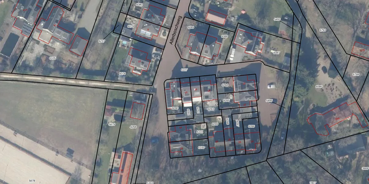 Allerboschweg 14 is gelegen op kadastraal perceel EML00I6091. Deze kadastrale aanduiding is uniek en wordt gebruikt door het Kadaster om eigendomsrechten en andere zakelijke rechten vast te leggen. Het perceel maakt onderdeel uit van de kadastrale gemeente Ermelo.