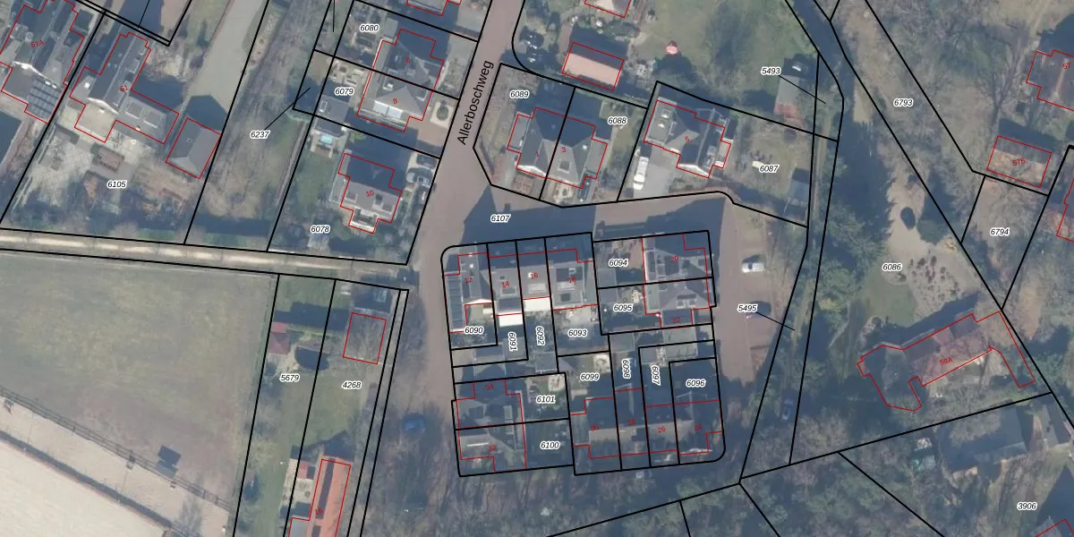 Allerboschweg 16 is gelegen op kadastraal perceel EML00I6092. Deze kadastrale aanduiding is uniek en wordt gebruikt door het Kadaster om eigendomsrechten en andere zakelijke rechten vast te leggen. Het perceel maakt onderdeel uit van de kadastrale gemeente Ermelo.