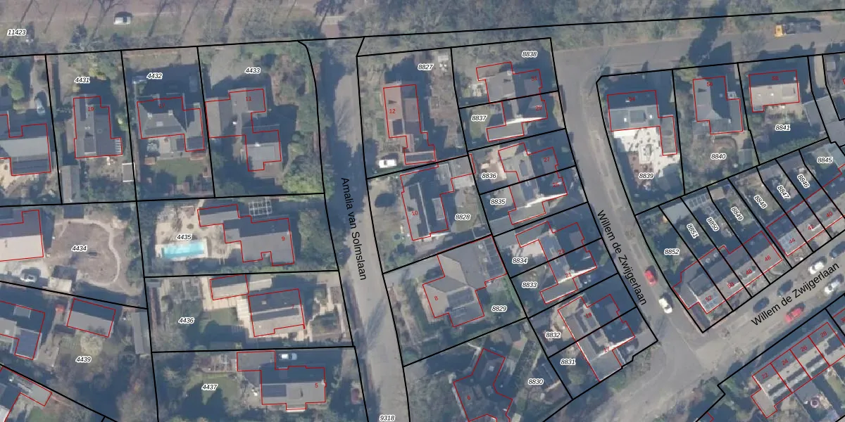 Het perceel waarop Amalia van Solmslaan 10 staat heeft een oppervlakte van 550 m². Dit is een groot perceel. De perceeloppervlakte wordt geregistreerd door het Kadaster. Gedetailleerde informatie over de maten van dit perceel kunt u vinden in het rapport Kadastrale kaart met maatvoering van Amalia van Solmslaan 10.