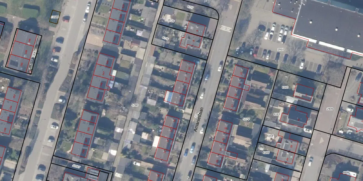 Het perceel waarop Amanietlaan 14 staat heeft een oppervlakte van 6460 m². Dit is een zeer groot perceel. De perceeloppervlakte wordt geregistreerd door het Kadaster. Gedetailleerde informatie over de maten van dit perceel kunt u vinden in het rapport Kadastrale kaart met maatvoering van Amanietlaan 14.
