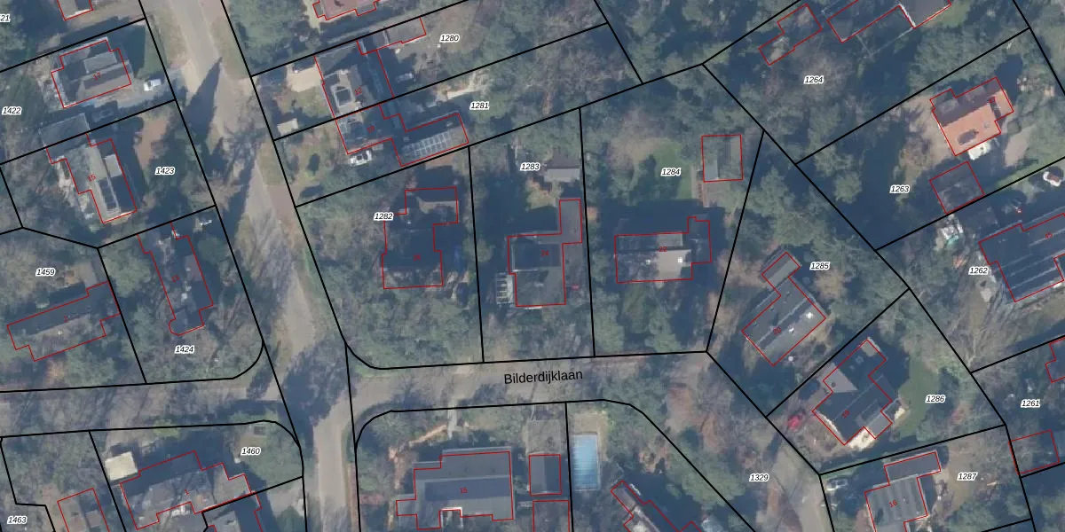 Het perceel waarop Bilderdijklaan 24 staat heeft een oppervlakte van 933 m². Dit is een groot perceel. De perceeloppervlakte wordt geregistreerd door het Kadaster. Gedetailleerde informatie over de maten van dit perceel kunt u vinden in het rapport Kadastrale kaart met maatvoering van Bilderdijklaan 24.