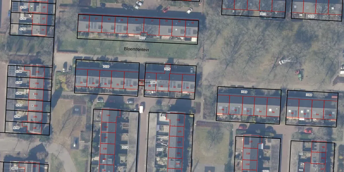 Het perceel waarop Bloemfontein 42 staat heeft een oppervlakte van 570 m². Dit is een groot perceel. De perceeloppervlakte wordt geregistreerd door het Kadaster. Gedetailleerde informatie over de maten van dit perceel kunt u vinden in het rapport Kadastrale kaart met maatvoering van Bloemfontein 42.
