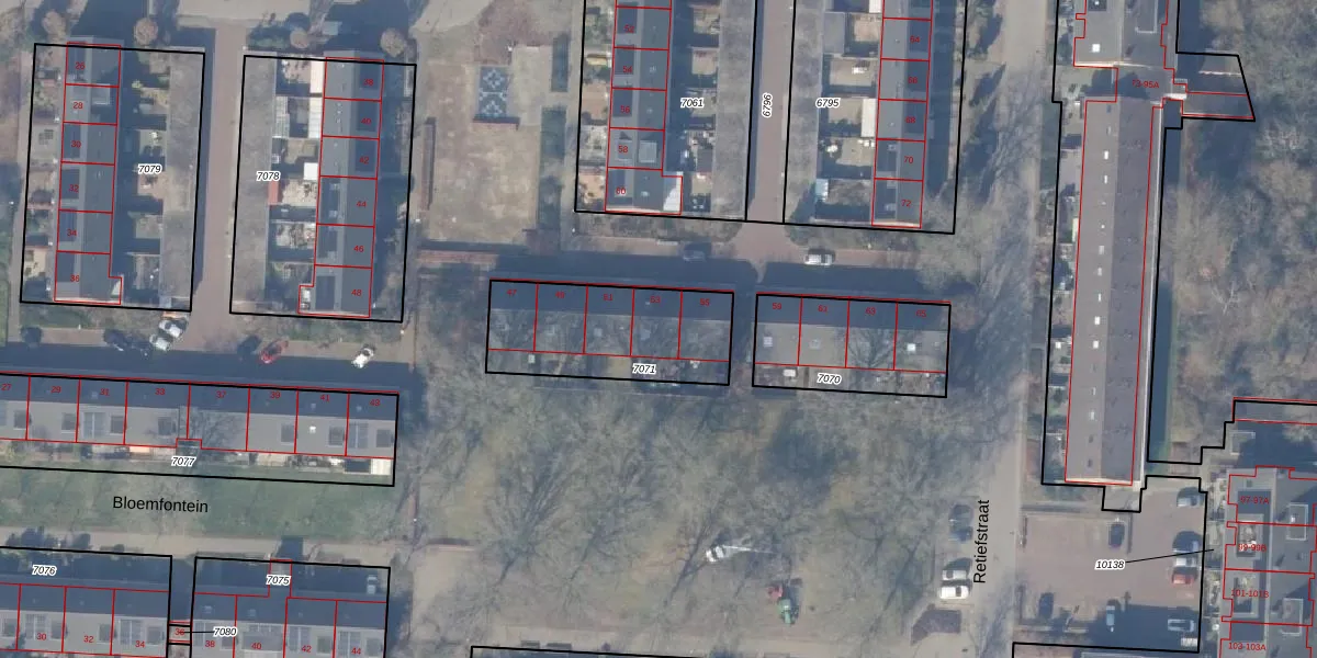 Het perceel waarop Bloemfontein 53 staat heeft een oppervlakte van 516 m². Dit is een groot perceel. De perceeloppervlakte wordt geregistreerd door het Kadaster. Gedetailleerde informatie over de maten van dit perceel kunt u vinden in het rapport Kadastrale kaart met maatvoering van Bloemfontein 53.
