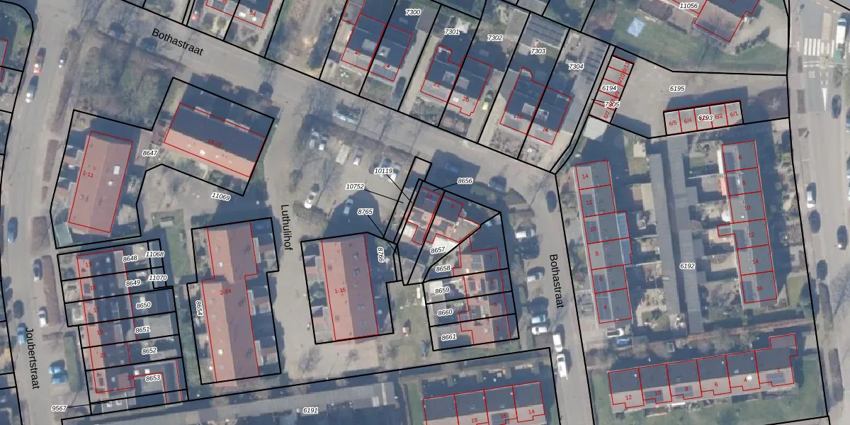 Het perceel waarop Bothastraat 11 staat heeft een oppervlakte van 118 m². Dit is een middelgroot perceel. De perceeloppervlakte wordt geregistreerd door het Kadaster. Gedetailleerde informatie over de maten van dit perceel kunt u vinden in het rapport Kadastrale kaart met maatvoering van Bothastraat 11.