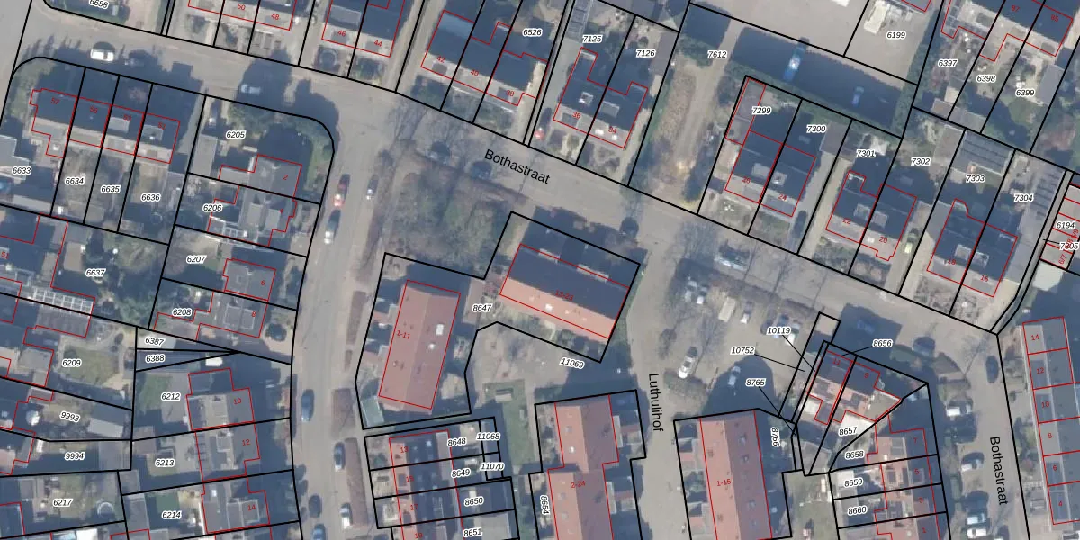 Het perceel waarop Bothastraat 21 staat heeft een oppervlakte van 1060 m². Dit is een zeer groot perceel. De perceeloppervlakte wordt geregistreerd door het Kadaster. Gedetailleerde informatie over de maten van dit perceel kunt u vinden in het rapport Kadastrale kaart met maatvoering van Bothastraat 21.