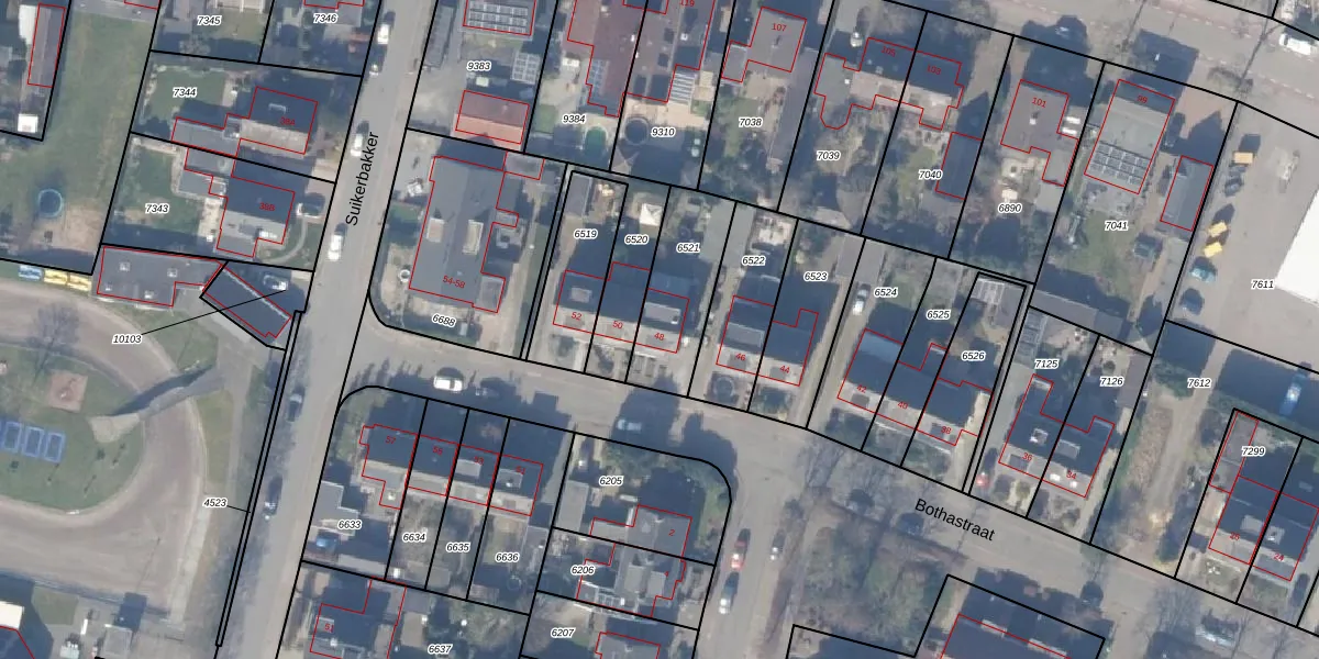 Het perceel waarop Bothastraat 48 staat heeft een oppervlakte van 303 m². Dit is een groot perceel. De perceeloppervlakte wordt geregistreerd door het Kadaster. Gedetailleerde informatie over de maten van dit perceel kunt u vinden in het rapport Kadastrale kaart met maatvoering van Bothastraat 48.