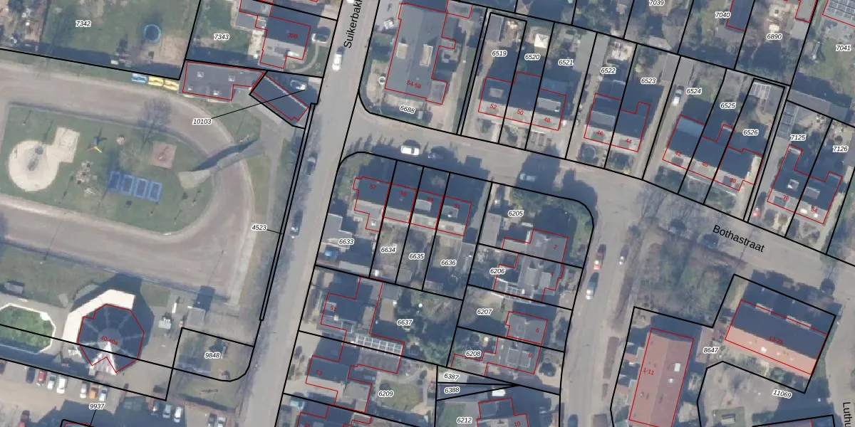 Het perceel waarop Bothastraat 53 staat heeft een oppervlakte van 186 m². Dit is een middelgroot perceel. De perceeloppervlakte wordt geregistreerd door het Kadaster. Gedetailleerde informatie over de maten van dit perceel kunt u vinden in het rapport Kadastrale kaart met maatvoering van Bothastraat 53.
