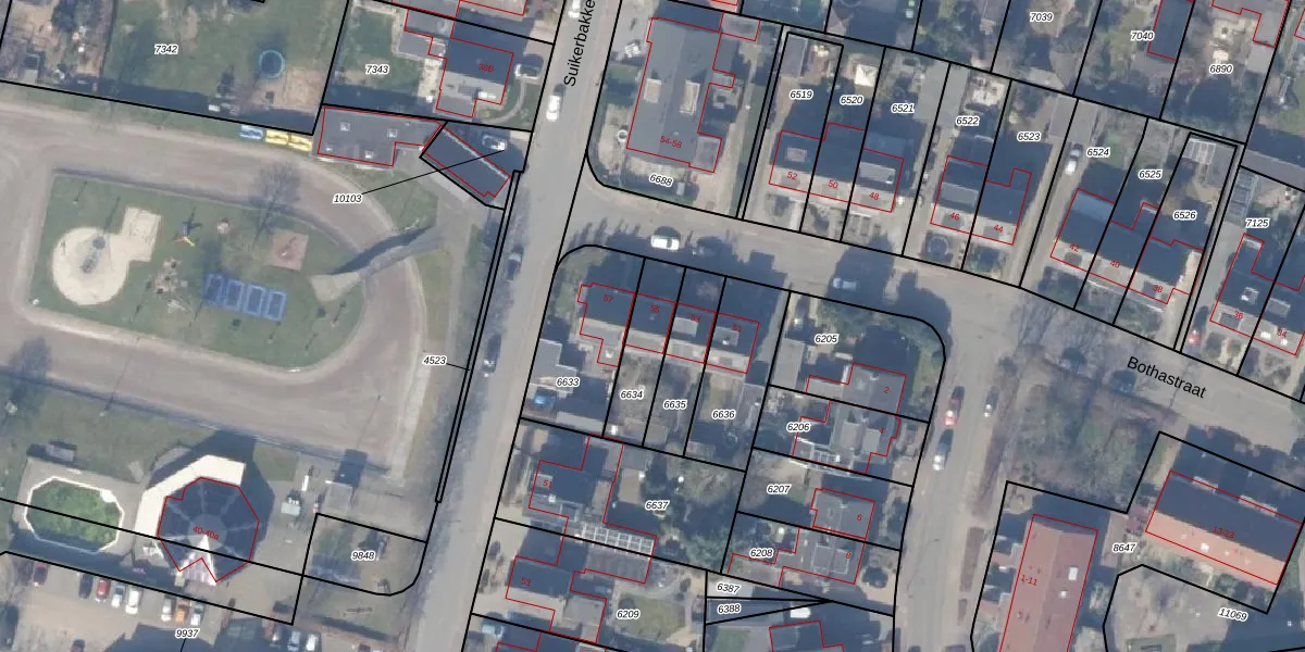 Het perceel waarop Bothastraat 55 staat heeft een oppervlakte van 186 m². Dit is een middelgroot perceel. De perceeloppervlakte wordt geregistreerd door het Kadaster. Gedetailleerde informatie over de maten van dit perceel kunt u vinden in het rapport Kadastrale kaart met maatvoering van Bothastraat 55.