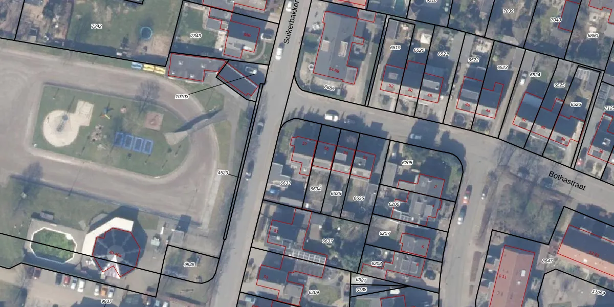 Het perceel waarop Bothastraat 57 staat heeft een oppervlakte van 357 m². Dit is een groot perceel. De perceeloppervlakte wordt geregistreerd door het Kadaster. Gedetailleerde informatie over de maten van dit perceel kunt u vinden in het rapport Kadastrale kaart met maatvoering van Bothastraat 57.
