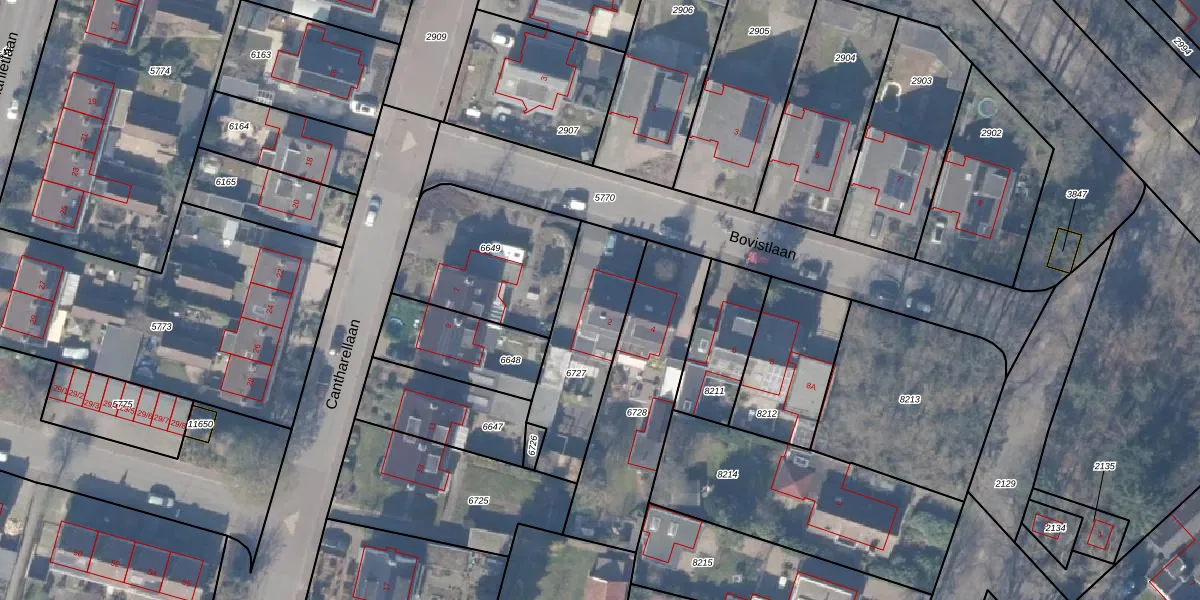 Het perceel waarop Bovistlaan 2 staat heeft een oppervlakte van 437 m². Dit is een groot perceel. De perceeloppervlakte wordt geregistreerd door het Kadaster. Gedetailleerde informatie over de maten van dit perceel kunt u vinden in het rapport Kadastrale kaart met maatvoering van Bovistlaan 2.