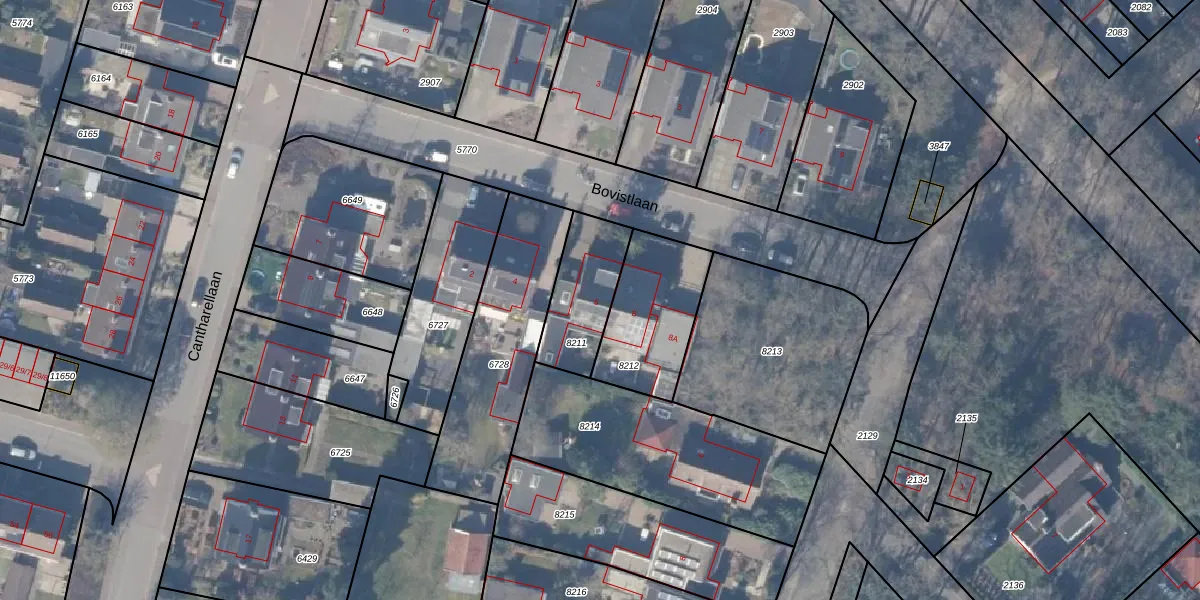 Het perceel waarop Bovistlaan 6 staat heeft een oppervlakte van 260 m². Dit is een middelgroot perceel. De perceeloppervlakte wordt geregistreerd door het Kadaster. Gedetailleerde informatie over de maten van dit perceel kunt u vinden in het rapport Kadastrale kaart met maatvoering van Bovistlaan 6.