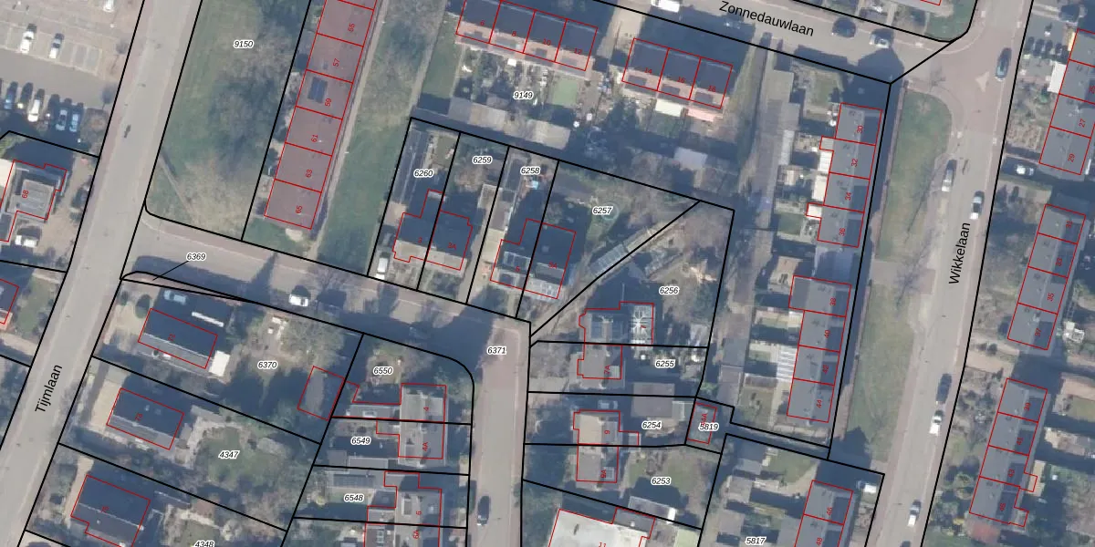 Gebruik de zoekbalk of klik op een perceel voor informatie over de adressen binnen dit perceel.