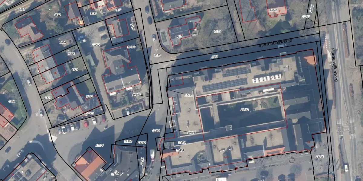Het adres is gelegen op perceel 10482 in de sectie F en de kadastrale gemeente Ermelo. De kadastrale aanduiding is aldus EML00-F-10482. Het perceel is 4655 m² groot. Dat is kleiner dan de gemiddelde perceeloppervlakte in Ermelo, dat op 5293,14 m² ligt. De grootste perceeloppervlakte in de kadastrale gemeente is 3,90 km². De kleinste oppervlakte bedraagt 0 m². Er zijn 71 adressen aanwezig op het perceel. De huidige grenzen van het perceel zijn digitaal in de Basisregistratie Kadaster (BRK) geregistreerd op 25-06-2021.