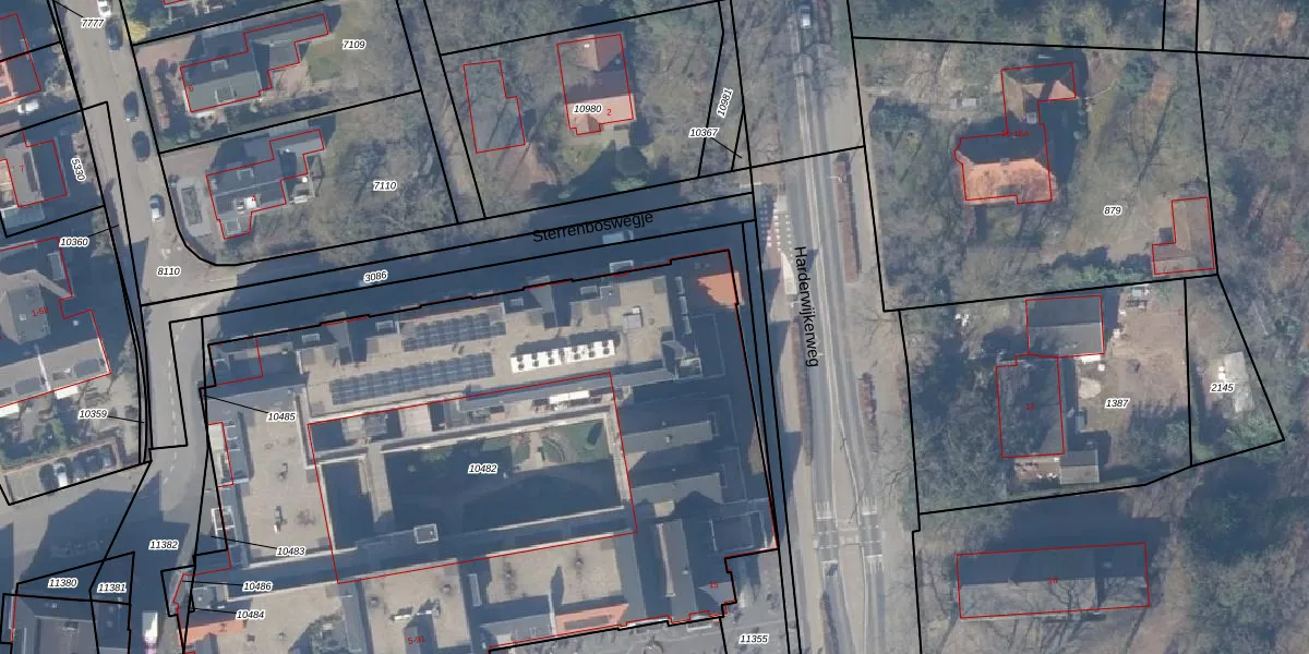 Het adres is gelegen op perceel 10482 in de sectie F en de kadastrale gemeente Ermelo. De kadastrale aanduiding is aldus EML00-F-10482. Het perceel is 4655 m² groot. Dat is kleiner dan de gemiddelde perceeloppervlakte in Ermelo, dat op 5291,54 m² ligt. De grootste perceeloppervlakte in de kadastrale gemeente is 3,90 km². De kleinste oppervlakte bedraagt 0 m². Er zijn 71 adressen aanwezig op het perceel. De huidige grenzen van het perceel zijn digitaal in de Basisregistratie Kadaster (BRK) geregistreerd op 25-06-2021.