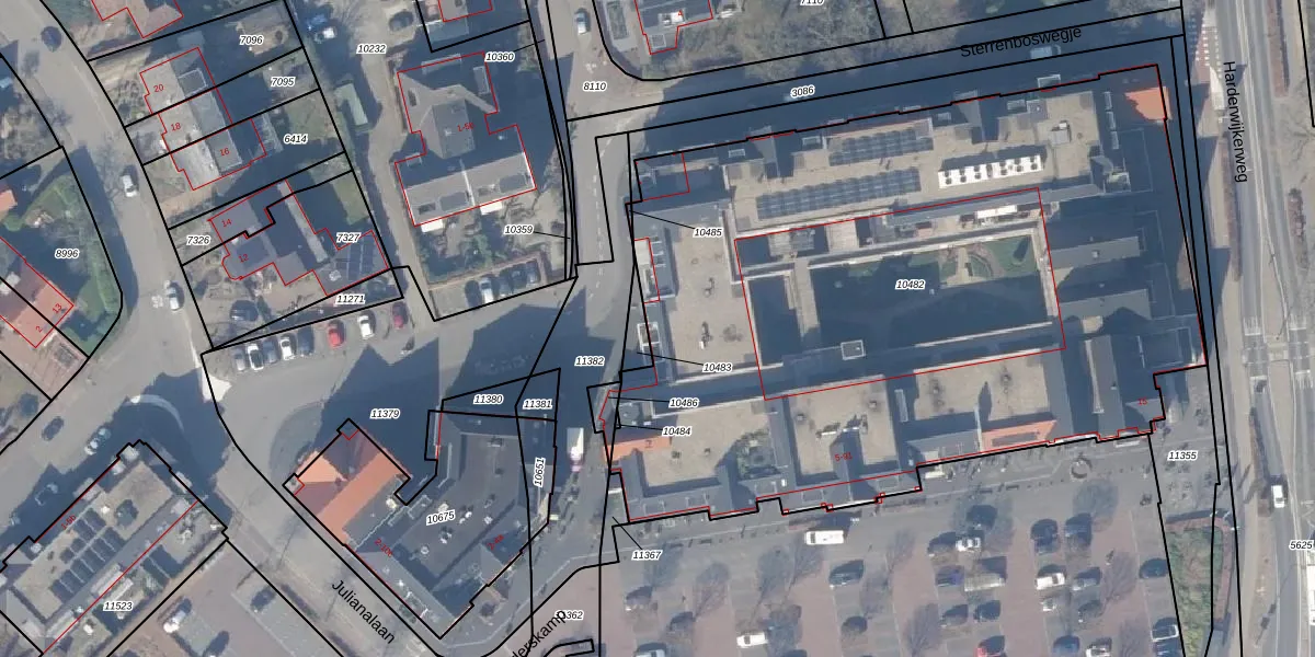 Het adres is gelegen op perceel 10482 in de sectie F en de kadastrale gemeente Ermelo. De kadastrale aanduiding is aldus EML00-F-10482. Het perceel is 4655 m² groot. Dat is kleiner dan de gemiddelde perceeloppervlakte in Ermelo, dat op 5293,46 m² ligt. De grootste perceeloppervlakte in de kadastrale gemeente is 3,90 km². De kleinste oppervlakte bedraagt 0 m². Op het perceel liggen in totaal 71 adressen. In de Basisregistratie Kadaster (BRK) werden de grenzen van het perceel geregistreerd op 25-06-2021.