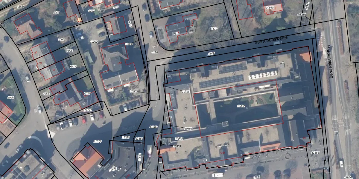 Het adres is gelegen op perceel 10482 in de sectie F en de kadastrale gemeente Ermelo. De kadastrale aanduiding is aldus EML00-F-10482. Het perceel is 4655 m² groot. Dat is kleiner dan de gemiddelde perceeloppervlakte in Ermelo, dat op 5291,54 m² ligt. De grootste perceeloppervlakte in de kadastrale gemeente is 3,90 km². De kleinste oppervlakte bedraagt 0 m². Op het perceel liggen in totaal 71 adressen. De huidige grenzen van het perceel zijn digitaal in de Basisregistratie Kadaster (BRK) geregistreerd op 25-06-2021.