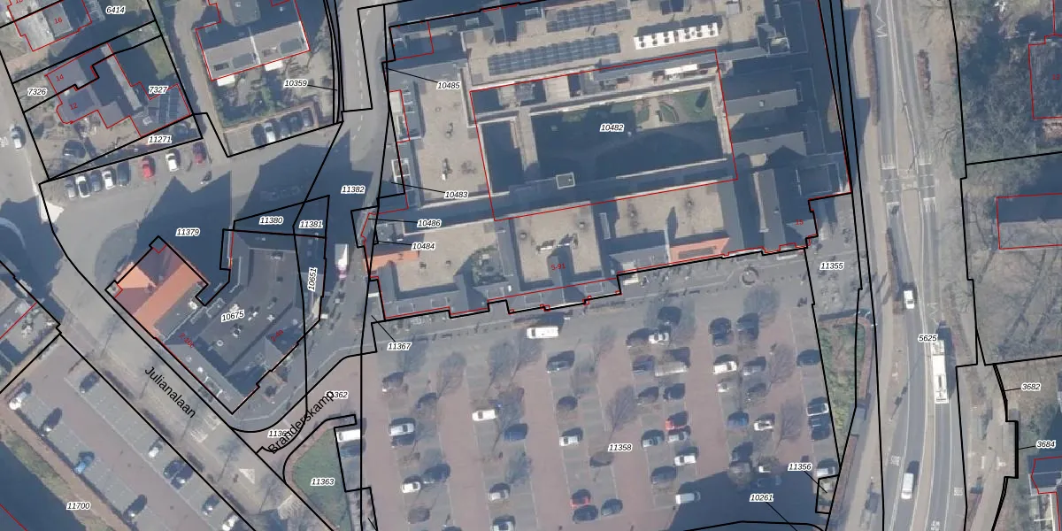 Het adres is gelegen op perceel 10482 in de sectie F en de kadastrale gemeente Ermelo. De kadastrale aanduiding is aldus EML00-F-10482. Het perceel is 4655 m² groot. Dat is kleiner dan de gemiddelde perceeloppervlakte in Ermelo, dat op 5291,54 m² ligt. De grootste perceeloppervlakte in de kadastrale gemeente is 3,90 km². De kleinste oppervlakte bedraagt 0 m². Op het perceel liggen in totaal 71 adressen. De laatste wijziging in het de Basisregistratie Kadaster (BRK) was op 25-06-2021.