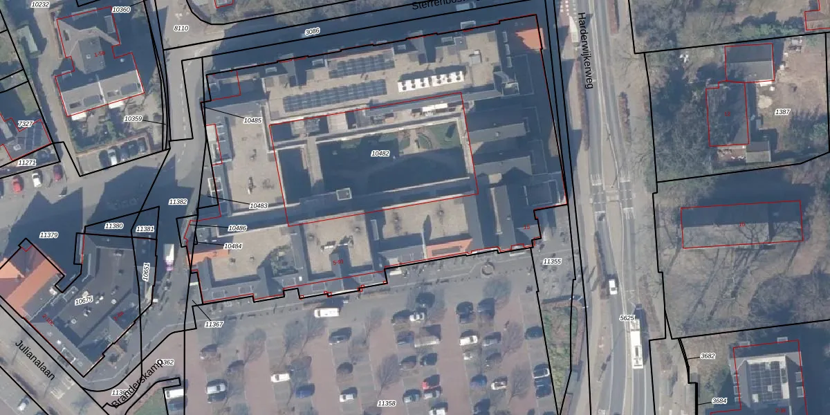 Het adres is gelegen op perceel 10482 in de sectie F en de kadastrale gemeente Ermelo. De kadastrale aanduiding is aldus EML00-F-10482. Het perceel is 4655 m² groot. Dat is kleiner dan de gemiddelde perceeloppervlakte in Ermelo, dat op 5292,5 m² ligt. De grootste perceeloppervlakte in de kadastrale gemeente is 3,90 km². De kleinste oppervlakte bedraagt 0 m². Op het perceel liggen in totaal 71 adressen. De laatste wijziging in het de Basisregistratie Kadaster (BRK) was op 25-06-2021.