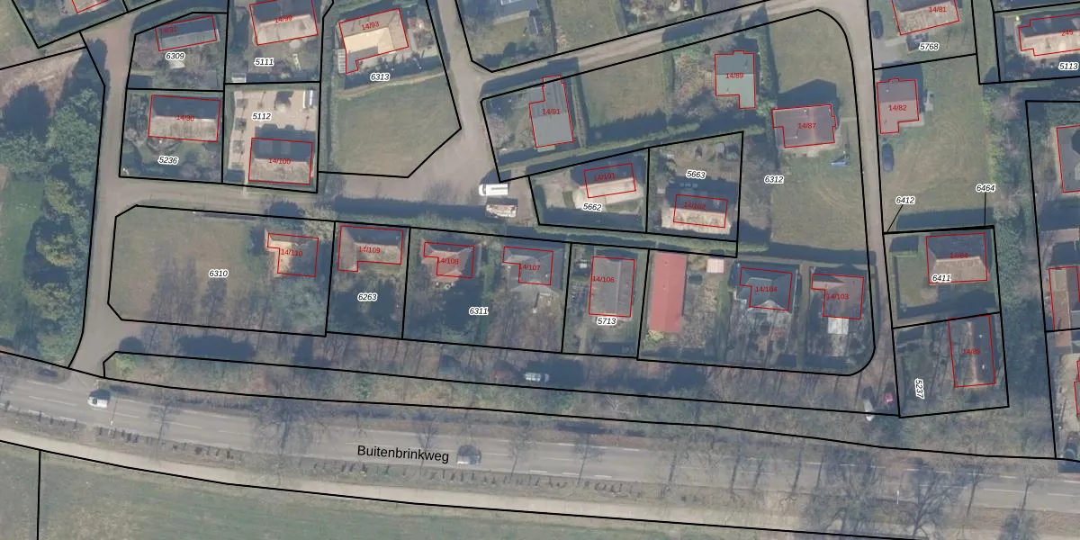 Het perceel waarop Buitenbrinkweg 14-107 staat heeft een oppervlakte van 600 m². Dit is een groot perceel. De perceeloppervlakte wordt geregistreerd door het Kadaster. Gedetailleerde informatie over de maten van dit perceel kunt u vinden in het rapport Kadastrale kaart met maatvoering van Buitenbrinkweg 14-107.