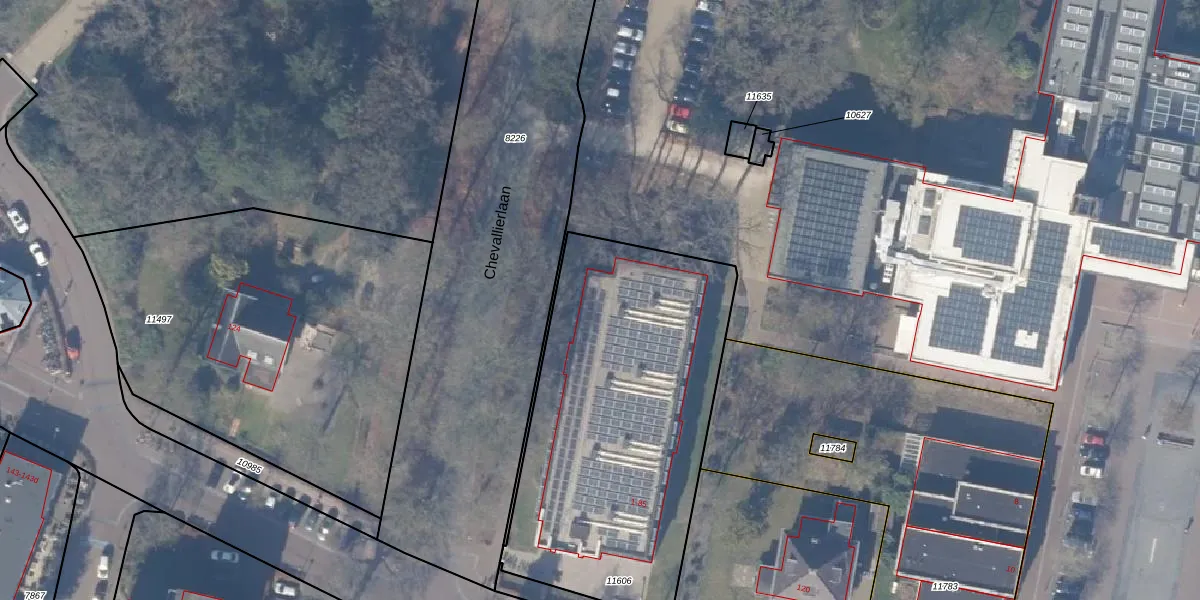 Het perceel waarop Chevallierlaan 39 staat heeft een oppervlakte van 1722 m². Dit is een zeer groot perceel. De perceeloppervlakte wordt geregistreerd door het Kadaster. Gedetailleerde informatie over de maten van dit perceel kunt u vinden in het rapport Kadastrale kaart met maatvoering van Chevallierlaan 39.