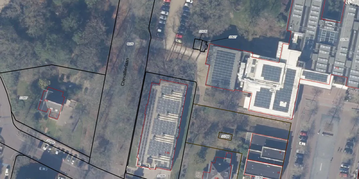 Het perceel waarop Chevallierlaan 55 staat heeft een oppervlakte van 1722 m². Dit is een zeer groot perceel. De perceeloppervlakte wordt geregistreerd door het Kadaster. Gedetailleerde informatie over de maten van dit perceel kunt u vinden in het rapport Kadastrale kaart met maatvoering van Chevallierlaan 55.