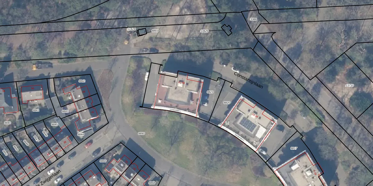 Het perceel waarop Constantijnlaan 47 staat heeft een oppervlakte van 845 m². Dit is een groot perceel. De perceeloppervlakte wordt geregistreerd door het Kadaster. Gedetailleerde informatie over de maten van dit perceel kunt u vinden in het rapport Kadastrale kaart met maatvoering van Constantijnlaan 47.