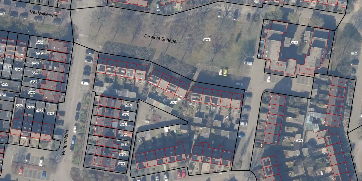 De Acht Schepel 65 is gelegen op kadastraal perceel EML00G2977. Deze kadastrale aanduiding is uniek en wordt gebruikt door het Kadaster om eigendomsrechten en andere zakelijke rechten vast te leggen. Het perceel maakt onderdeel uit van de kadastrale gemeente Ermelo.
