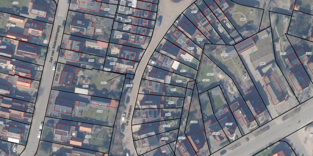 Het perceel waarop De Driesten 14 staat heeft een oppervlakte van 243 m². Dit is een middelgroot perceel. De perceeloppervlakte wordt geregistreerd door het Kadaster. Gedetailleerde informatie over de maten van dit perceel kunt u vinden in het rapport Kadastrale kaart met maatvoering van De Driesten 14.