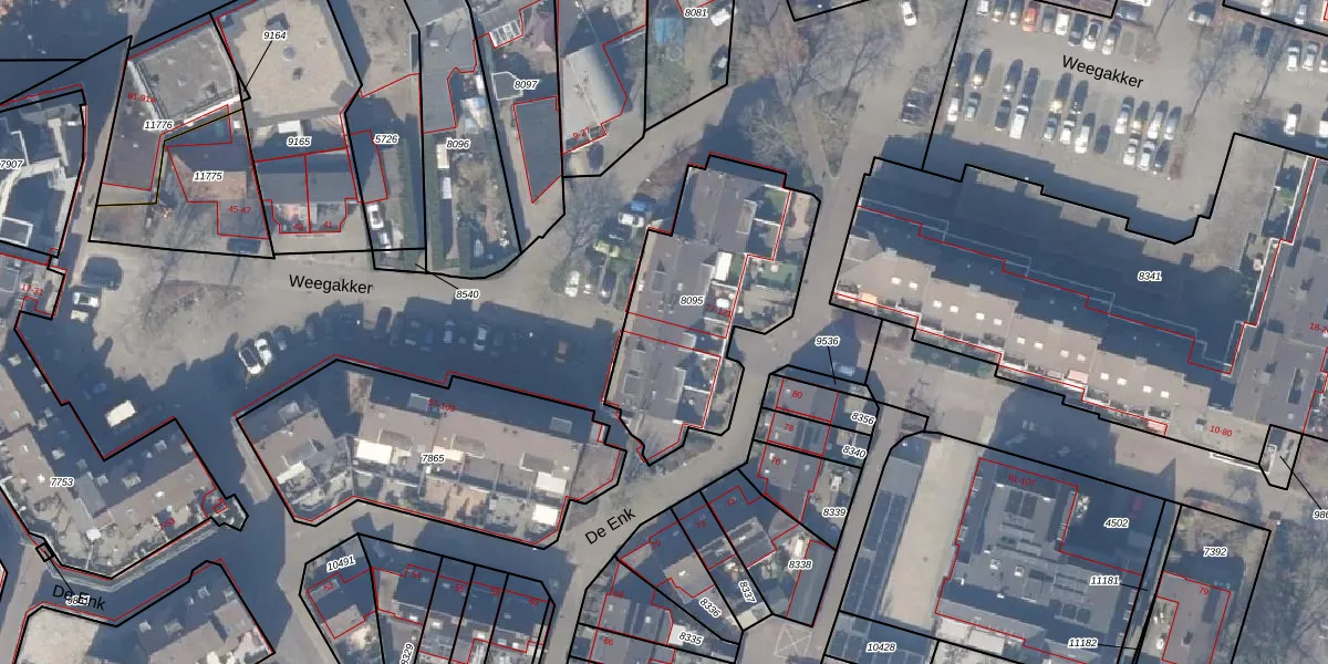 Het perceel waarop De Enk 117 staat heeft een oppervlakte van 850 m². Dit is een groot perceel. De perceeloppervlakte wordt geregistreerd door het Kadaster. Gedetailleerde informatie over de maten van dit perceel kunt u vinden in het rapport Kadastrale kaart met maatvoering van De Enk 117.