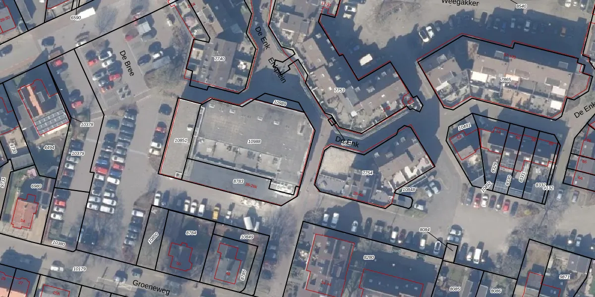 Het perceel waarop De Enk 26-L staat heeft een oppervlakte van 930 m². Dit is een groot perceel. De perceeloppervlakte wordt geregistreerd door het Kadaster. Gedetailleerde informatie over de maten van dit perceel kunt u vinden in het rapport Kadastrale kaart met maatvoering van De Enk 26-L.