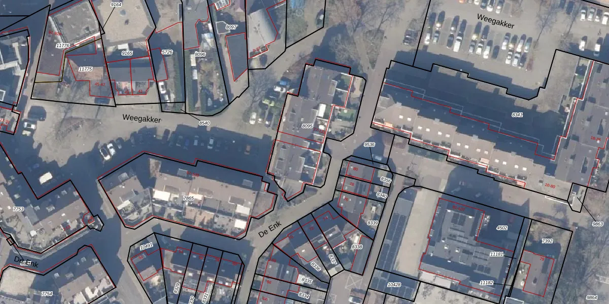 Het perceel waarop De Enk 85 staat heeft een oppervlakte van 850 m². Dit is een groot perceel. De perceeloppervlakte wordt geregistreerd door het Kadaster. Gedetailleerde informatie over de maten van dit perceel kunt u vinden in het rapport Kadastrale kaart met maatvoering van De Enk 85.