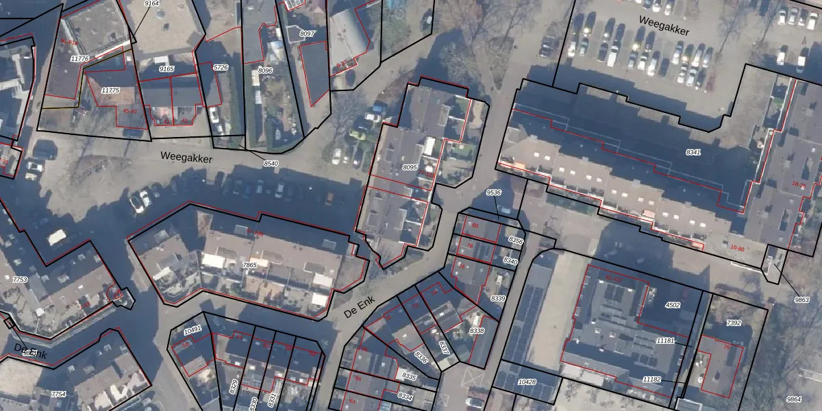 Het perceel waarop De Enk 87 staat heeft een oppervlakte van 850 m². Dit is een groot perceel. De perceeloppervlakte wordt geregistreerd door het Kadaster. Gedetailleerde informatie over de maten van dit perceel kunt u vinden in het rapport Kadastrale kaart met maatvoering van De Enk 87.
