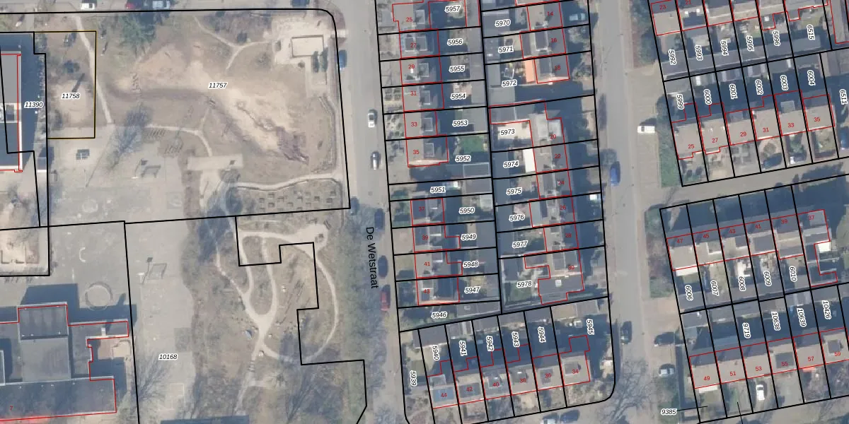 Gebruik de zoekbalk of klik op een perceel voor informatie over de adressen binnen dit perceel.