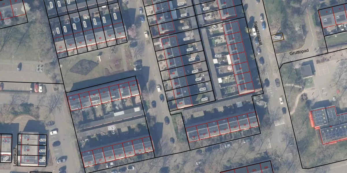 Gebruik de zoekbalk of klik op een perceel voor informatie over de adressen binnen dit perceel.