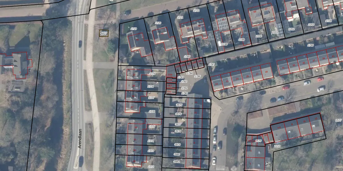 Gebruik de zoekbalk of klik op een perceel voor informatie over de adressen binnen dit perceel.