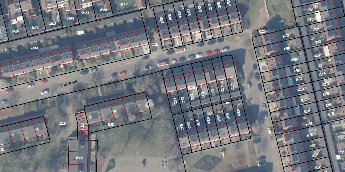 Het perceel waarop Duifstraat 28 staat heeft een oppervlakte van 160 m². Dit is een middelgroot perceel. De perceeloppervlakte wordt geregistreerd door het Kadaster. Gedetailleerde informatie over de maten van dit perceel kunt u vinden in het rapport Kadastrale kaart met maatvoering van Duifstraat 28.