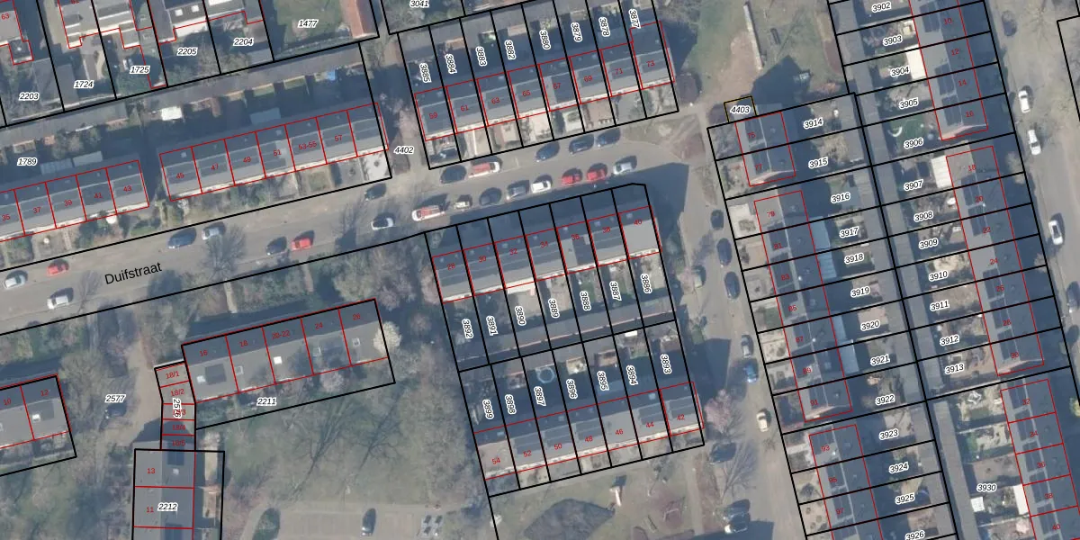 Het perceel waarop Duifstraat 34 staat heeft een oppervlakte van 156 m². Dit is een middelgroot perceel. De perceeloppervlakte wordt geregistreerd door het Kadaster. Gedetailleerde informatie over de maten van dit perceel kunt u vinden in het rapport Kadastrale kaart met maatvoering van Duifstraat 34.