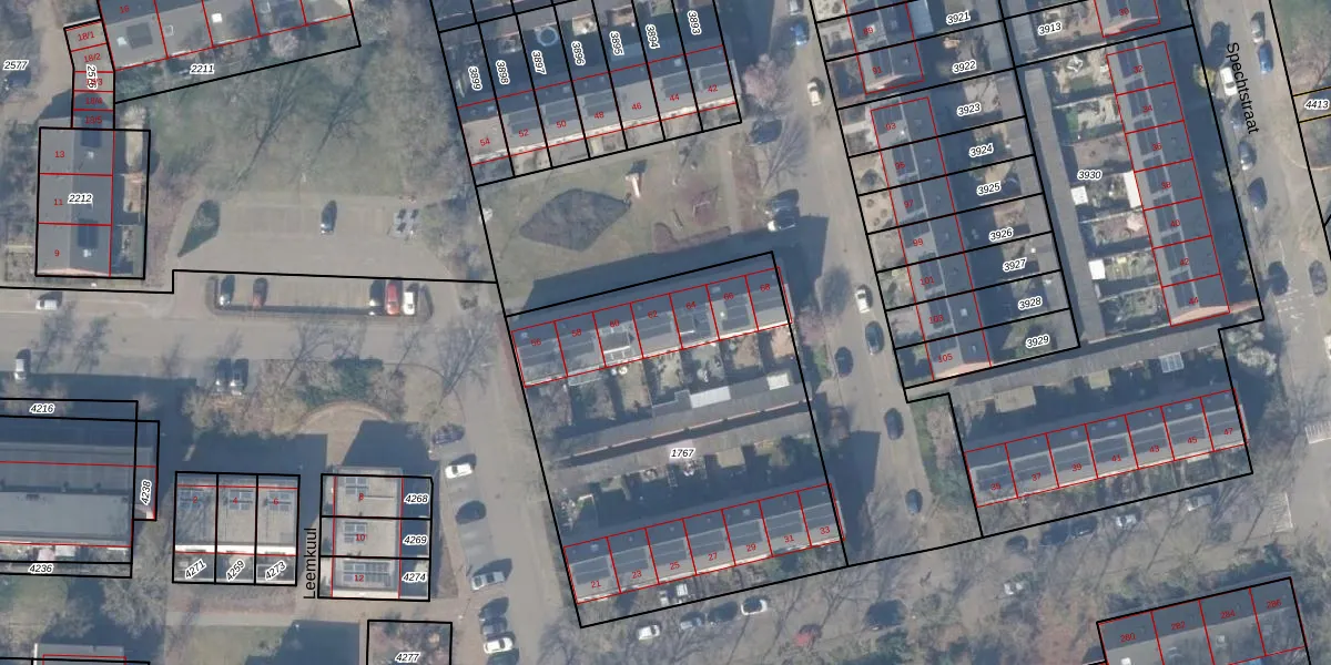 Het perceel waarop Duifstraat 62 staat heeft een oppervlakte van 2037 m². Dit is een zeer groot perceel. De perceeloppervlakte wordt geregistreerd door het Kadaster. Gedetailleerde informatie over de maten van dit perceel kunt u vinden in het rapport Kadastrale kaart met maatvoering van Duifstraat 62.
